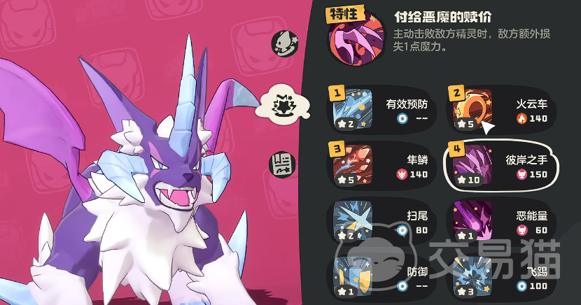 关于技能,这只精灵所需要携带的第一个技能叫做恶念交换,这是该精灵独特有的一个技能,技能的效果为与敌方交换生命值,在战斗中这技能可以让其在血量劣势的情况下转变为优势,非常的好用。