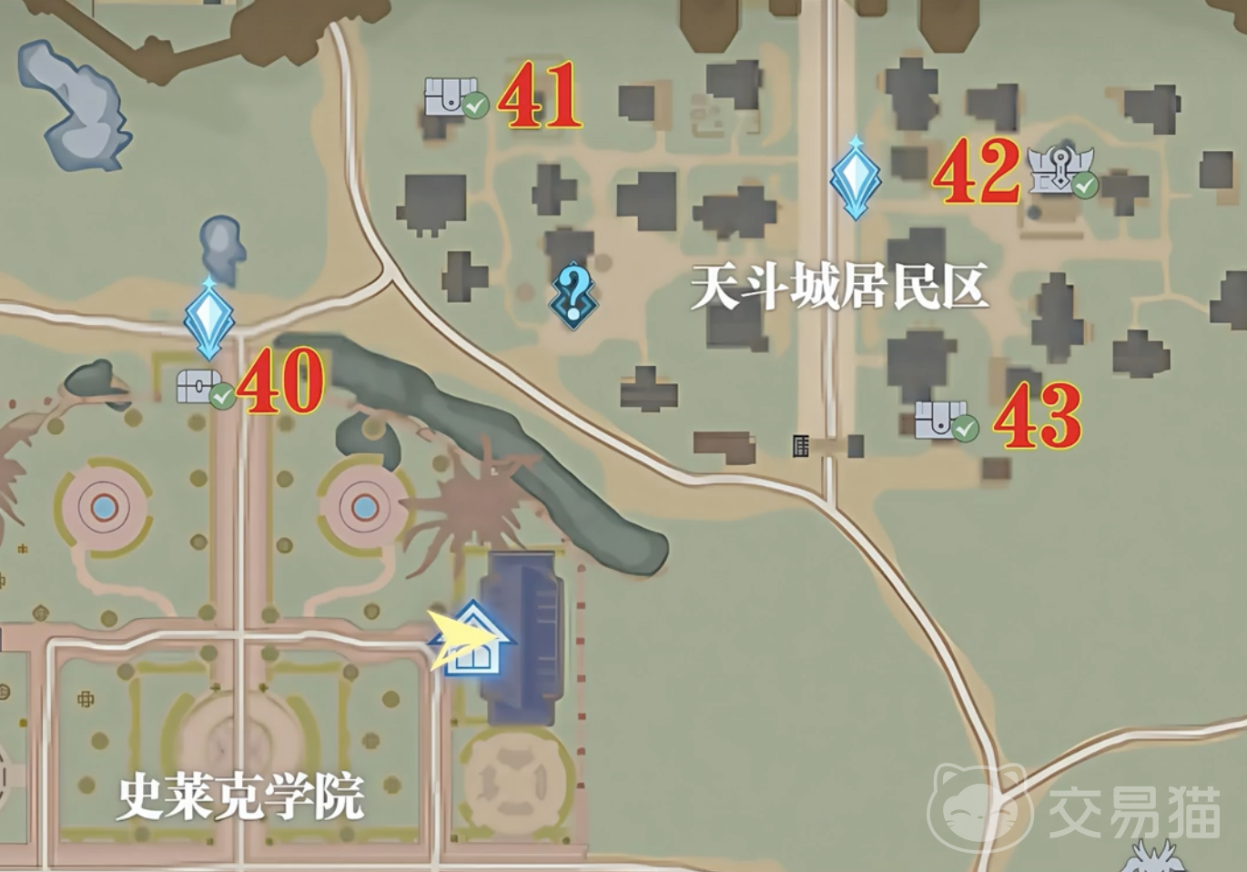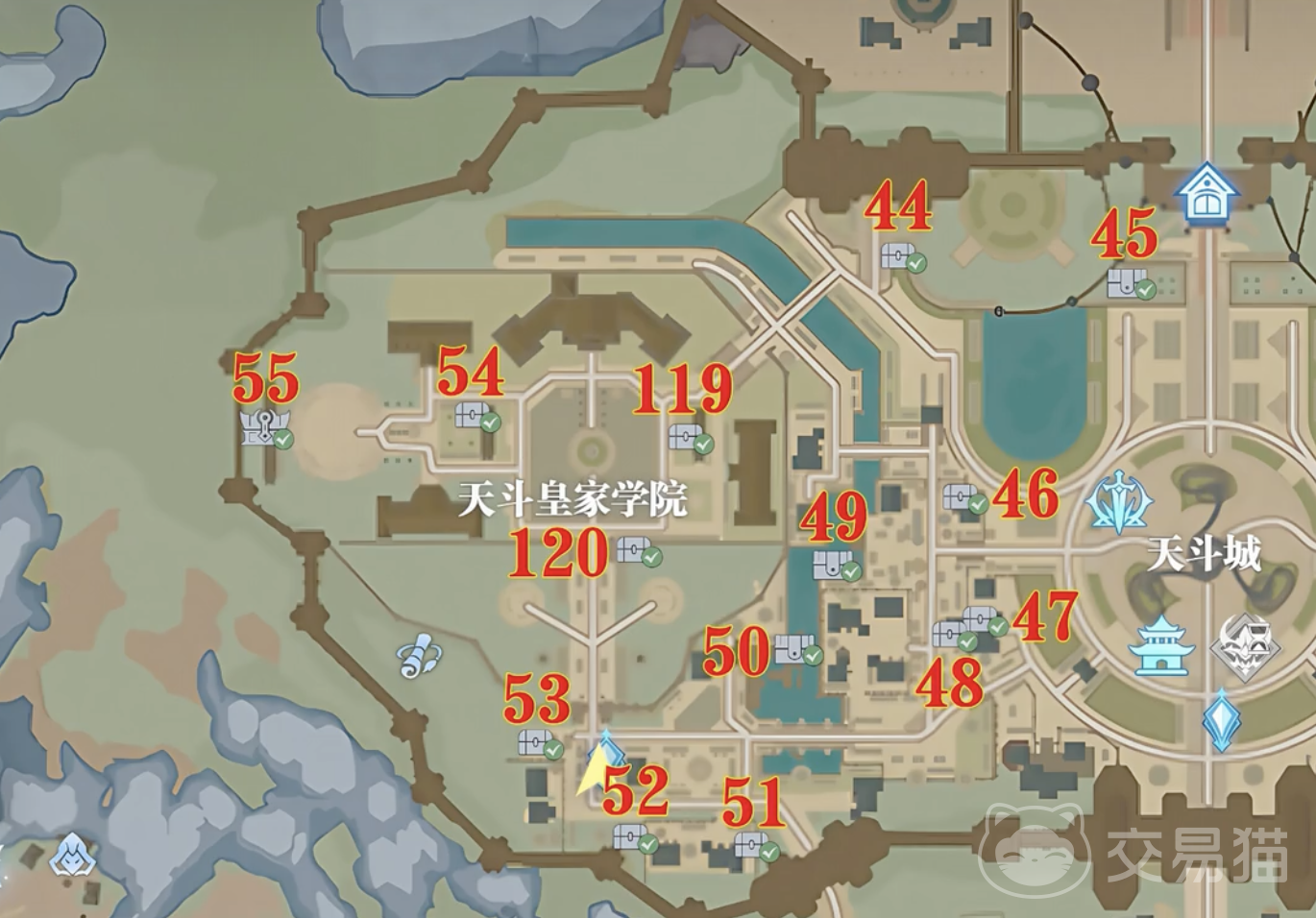 接着来到天斗城,以城中的雕像为界,在左边的天斗皇家学院,具体的宝箱如下。