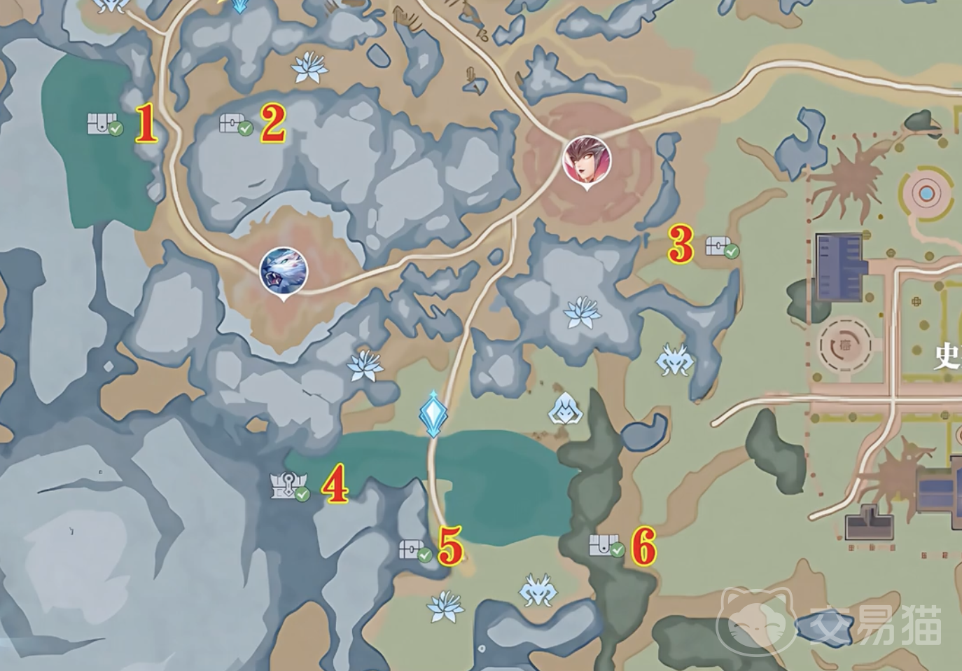 天水学院往下走,通往坚冰幻霜鹰的路上,有四个宝箱。