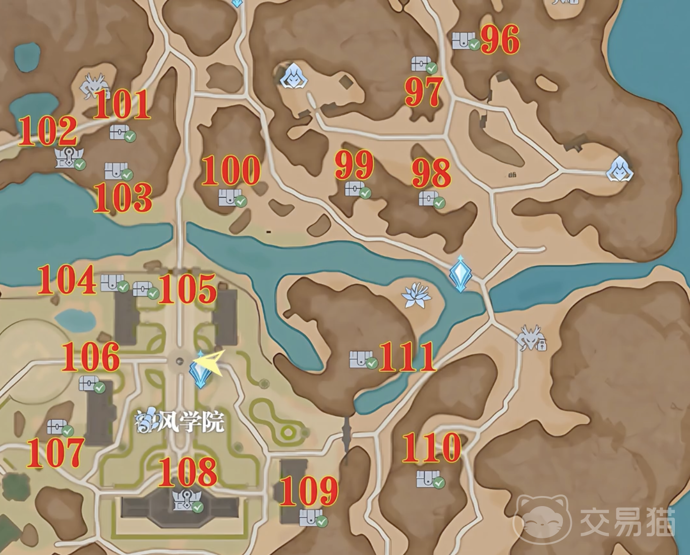 最后就是神风学院附近,基本上沿着每条路都有宝箱分布,宝箱数量比较多。