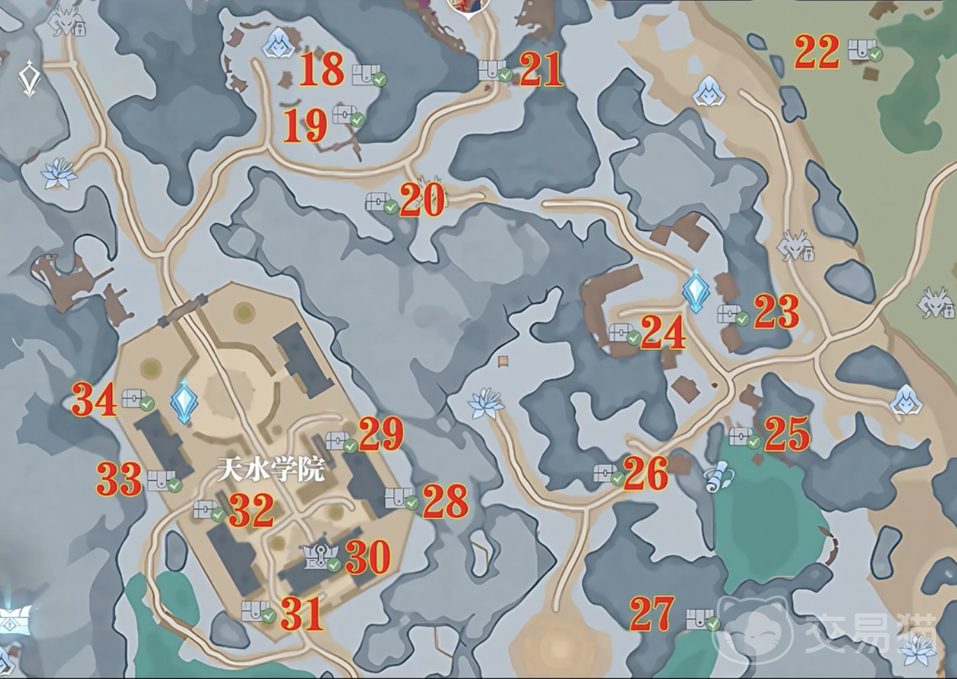 在天水学院附近的宝箱比较多,总共15个宝箱。