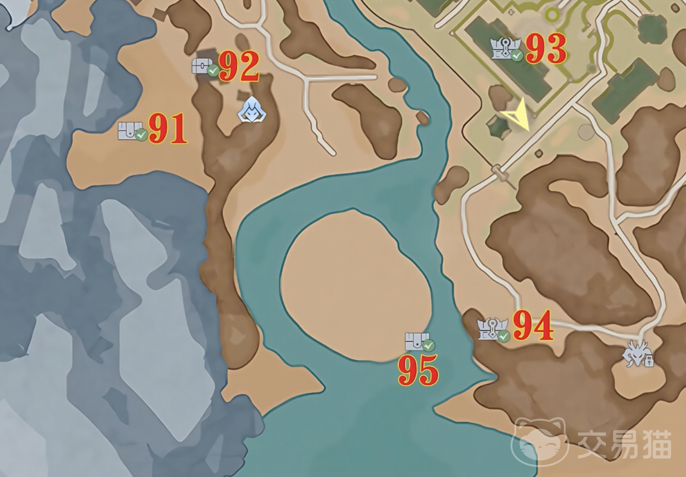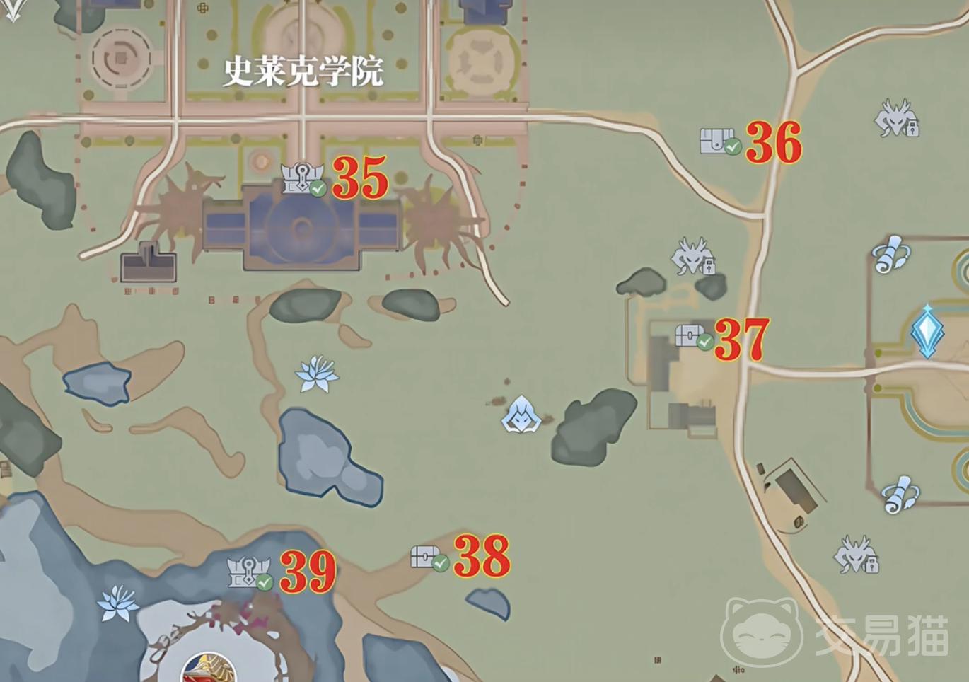 山区部分的宝箱就这么多了,接着我们到中心的平原地图,史莱克学院附近,这里宝箱比较分散,总共有5个。